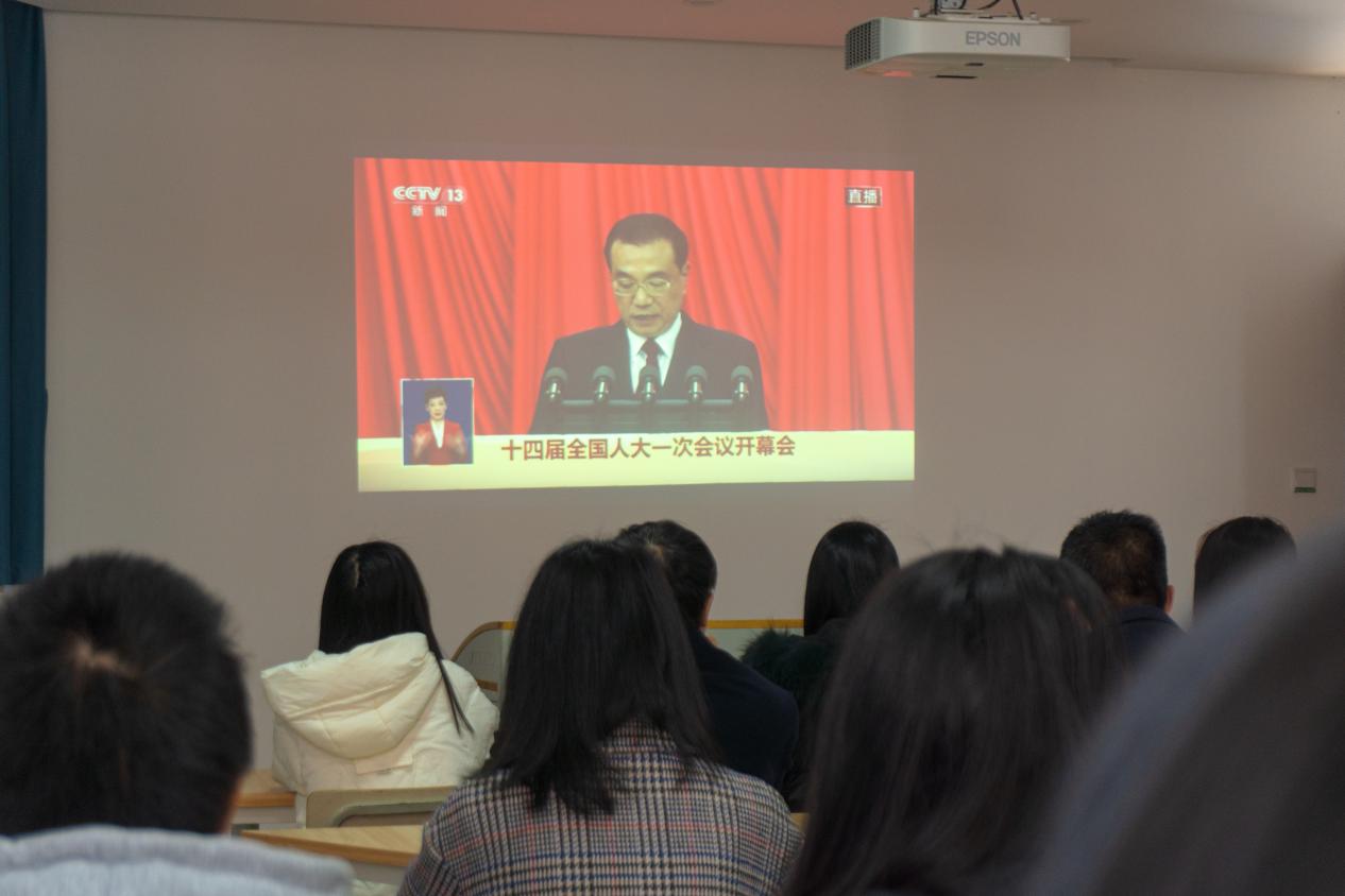 3月5日上午,第十四届全国人民代表大会第一次会议在北京隆重开幕。旅游学院组织30余名师生党员在红旅驿站收看。