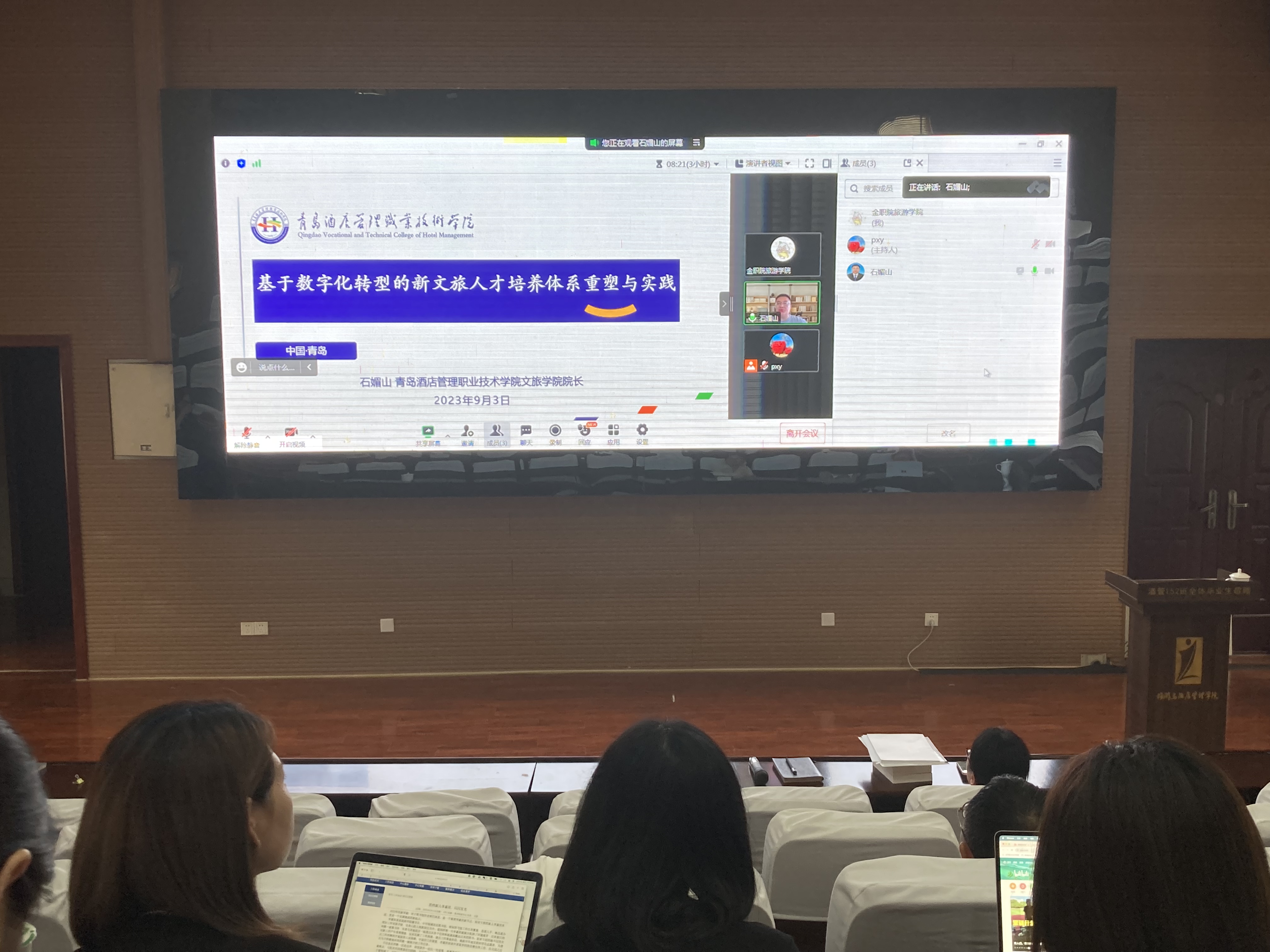 近日,旅游学院举办《基于数字化转型的新文旅人才培养体系重塑与实践》讲座,主讲人为青岛酒店管理职业技术学院石媚山副教授,他从政策逻辑、产业逻辑、人才逻辑等方面讲述了文旅人才培养的数字化转型的必要性、重要性和紧迫性。并以青岛酒店管理职业技术学院为例,分享了数字化文旅重要的场景,开阔了在场教师的视野,同时介绍了该校旅游类专业数字化改革的经验,为今后我院旅游专业数字化改革提供了借鉴和参考。