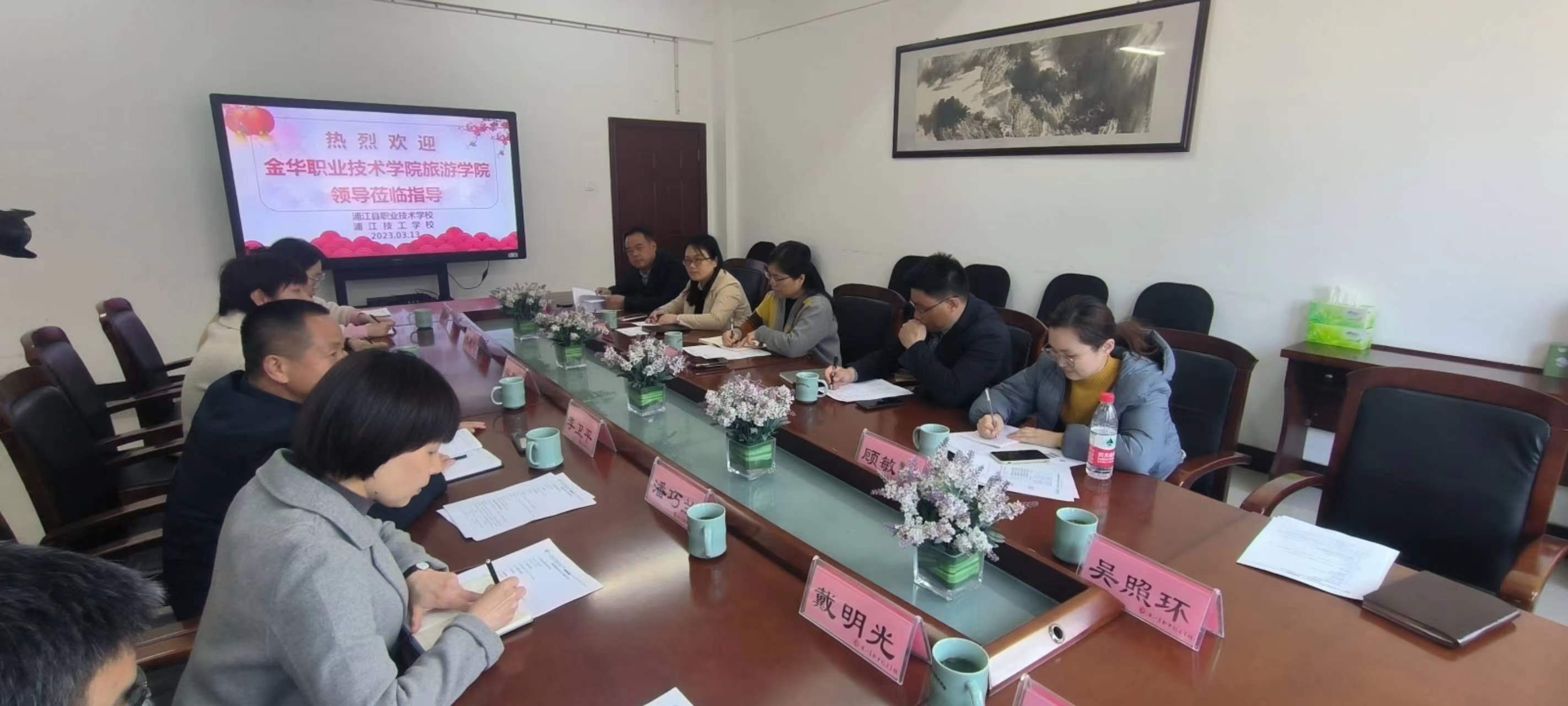 3月13日,旅游学院院长谭春霞、党委书记陈晓明、副院长石秀珍和专业教师一行6人前往浦江职业技术学校,就两校中高职一体化办学的相关事宜进行洽谈。
