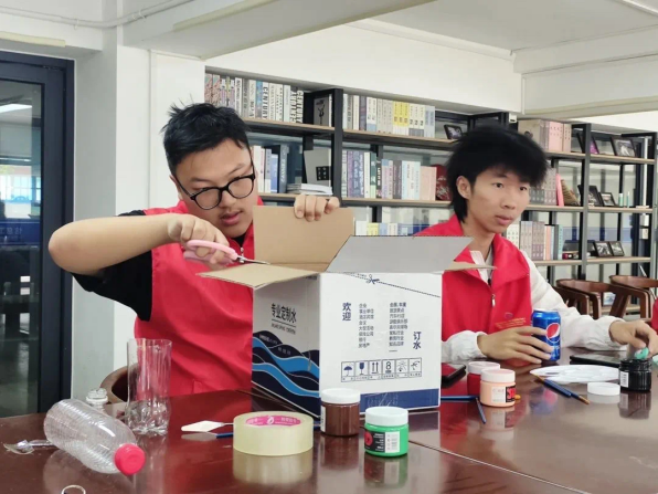 在校园广场开设“环保手工市集”,学生们利用废旧纸箱、布料等材料制作元旦贺卡、灯笼和装饰画。现场还设置“创意教学角”,由手工艺社团指导市民将废弃饮料瓶改造成迷你盆栽,传递“变废为宝”的环保理念。