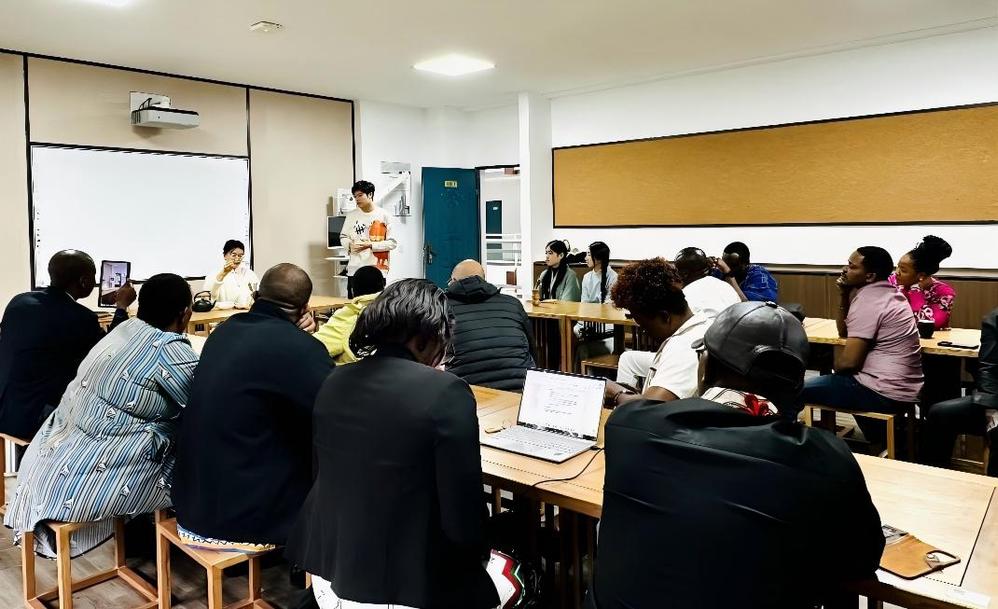 双方还聚焦中外文旅产业开展座谈。肯尼亚、尼日利亚、加纳、南非、津巴布韦五个国家的学员代表与文旅学院的老师齐聚一堂,围绕非洲及中国(金华)文旅产业发展现状、实践经验与未来趋势展开深度分享,呈现了一场兼具国际视野与地方特色的文旅思想盛宴。座谈会上,非洲学员代表详细介绍了各国文旅发展成果与智慧,文旅学院老师则聚焦中国文旅融合实践,重点分享浙江文旅融合三大战略,并从AI技术赋能角度阐述研学旅游创新路径。