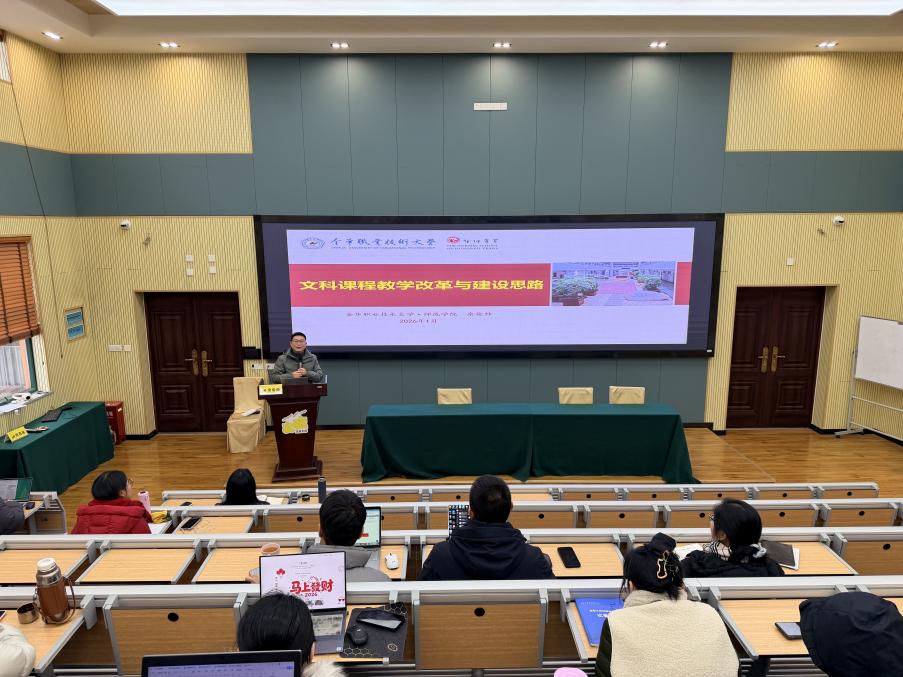 随后,师范学院副院长余俊帅在文科课程教学改革与建设思路专题讲座中,聚焦文科课程提质路径,分享了学前教育专业建设与人才培养课程改革“理实一体化、信息数字化、课程综合化”三阶段历程,重点分享了案例综合课程、情景综合课程、项目综合课程三类综合化课程的建设路径,以及如何通过数字化技术推动教学改革,实现教学内容与岗位需求精准对接,使人才培养落到实处。