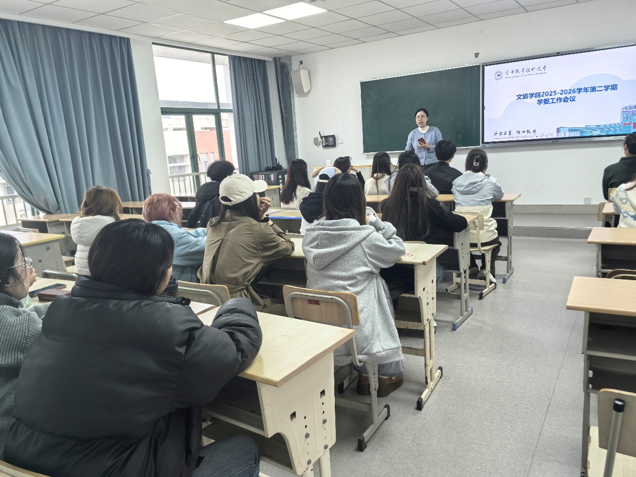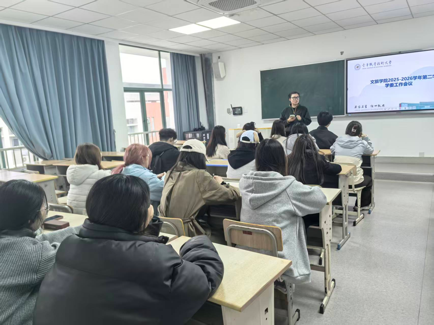 为夯实教学质量,畅通师生沟通,发挥学委桥梁纽带作用,3月16日,文旅学院召开期初学委工作会议。教学办副主任、课务老师及全院各班学委代表参会,明确新学期学委工作重点与履职方向。